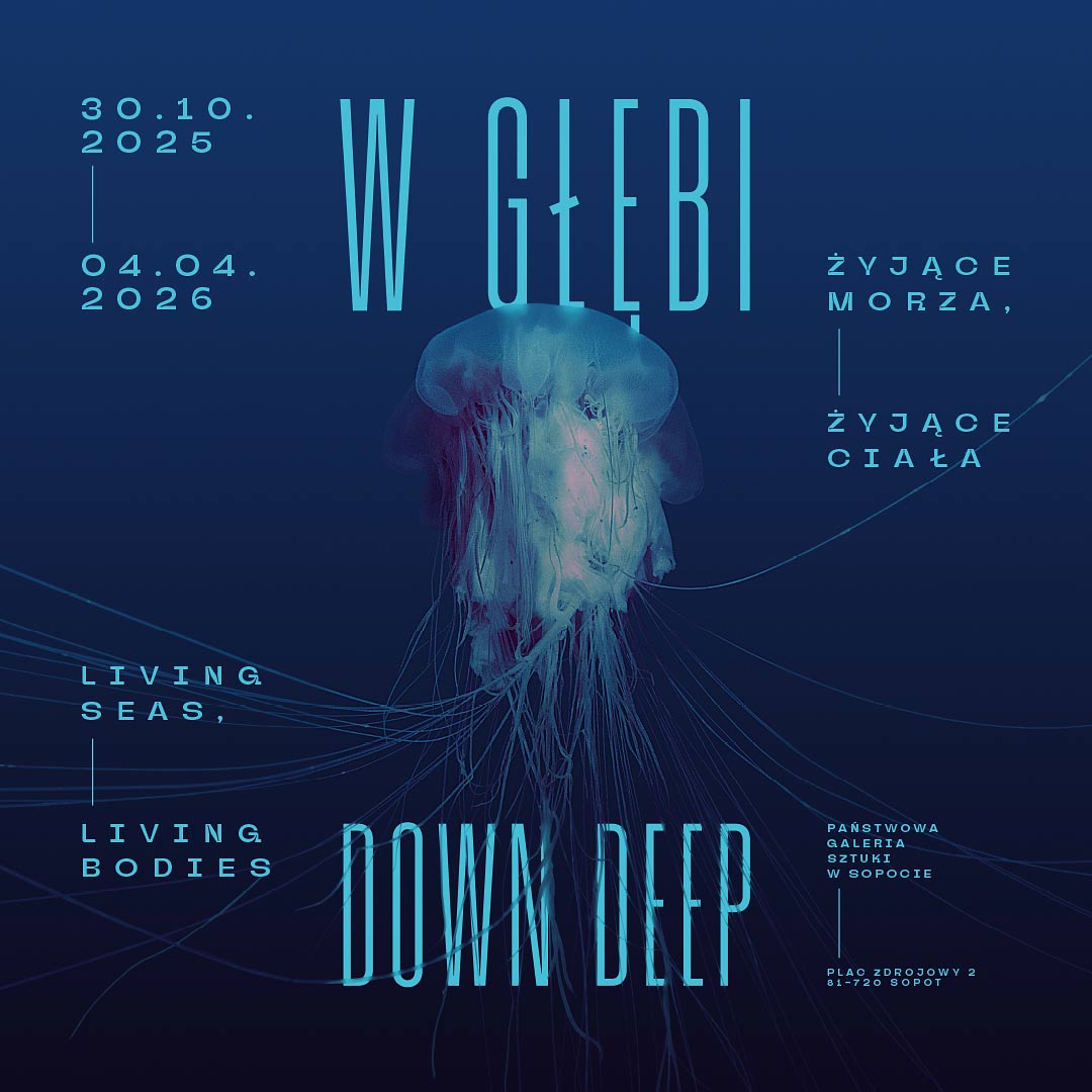 „W głębi: Żyjące morza, żyjące ciała/Down Deep: Living seas, living bodies” to międzynarodowa wystawa zbiorowa prezentowana w Państwowej Galerii Sztuki w Sopocie. Nad brzegiem Bałtyku, skąd rozciąga się widok na Zatokę Gdańską, spotkają się artyści z Polski, Francji, Irlandii, Litwy, Łotwy, Estonii, Grecji, Australii, Stanów Zjednoczonych, Chile, Indii, Korei Południowej i Karaibów. Partnerami merytorycznymi przedsięwzięcia są Instytut Oceanologii Polskiej Akademii Nauk oraz Uniwersytet Gdański, których wiedza i doświadczenie wzbogacają artystyczny wymiar wystawy o perspektywę naukową i refleksję nad kondycją oceanów.