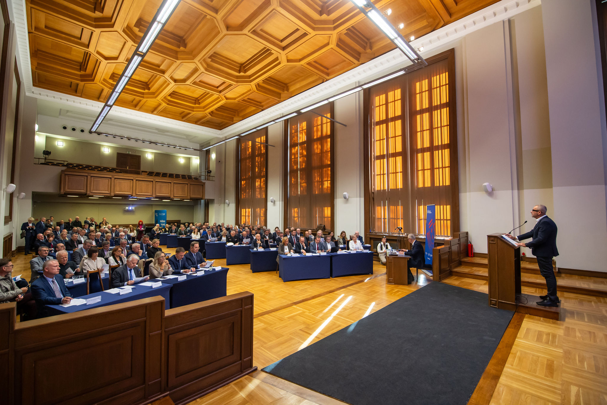 Zgromadzonych gości powitał również prof. Piotr Stepnowski, przewodniczący Zgromadzenia Związku Uczelni Fahrenheita, rektor Uniwersytetu Gdańskiego: - Konwent Gospodarczy to nie tylko forum wymiany myśli – to żywa sieć współpracy, która owocuje konkretnymi projektami, innowacjami i inicjatywami. Dzięki synergii nauki i biznesu możliwy jest realny transfer wiedzy, który wzmacnia potencjał regionu. Nasze uczelnie – Gdański Uniwersytet Medyczny, Politechnika Gdańska i Uniwersytet Gdański – dysponują ogromnym kapitałem intelektualnym, który coraz częściej znajduje zastosowanie w praktyce gospodarczej. Z dumą mogę powiedzieć, że Konwent stał się miejscem, gdzie spotykają się różne perspektywy – naukowców, przedsiębiorców, samorządowców – i gdzie rodzą się wspólne odpowiedzi na wyzwania współczesności. Rozmawialiśmy już o smart cities, transformacji energetycznej, ochronie zdrowia, innowacjach w gospodarce morskiej czy potencjale badań biomedycznych. Dziś kontynuujemy tę misję, koncentrując się na kluczowych wyzwaniach rozwojowych województwa pomorskiego.