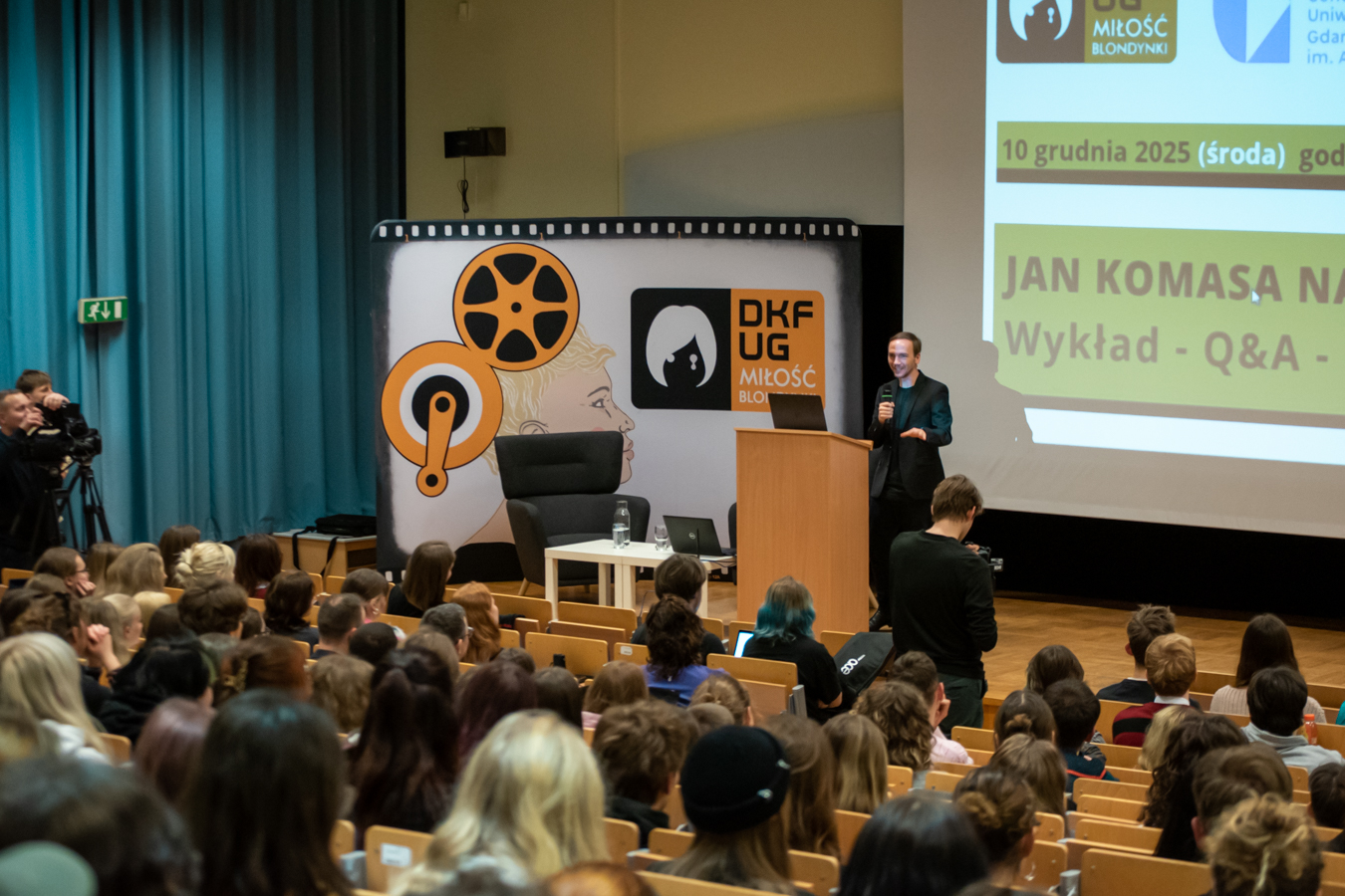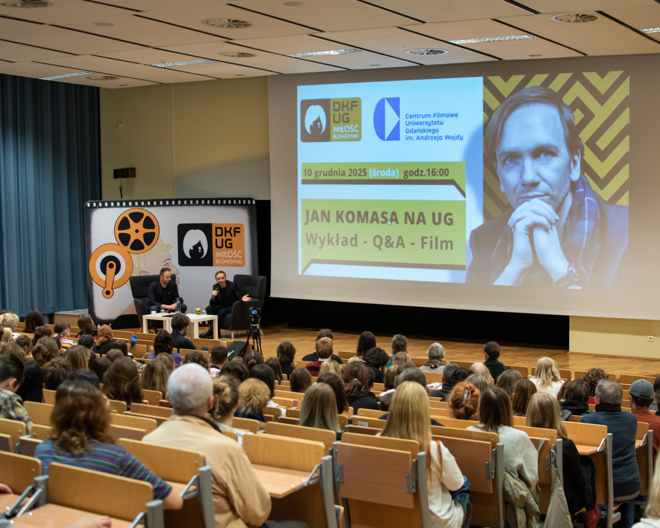 W ramach projektu „50 na 50”, związanego z jubileuszową 50. edycją Festiwalu Polskich Filmów Fabularnych w Gdyni, którego odsłonę na Uniwersytecie Gdańskim organizuje DKF „Miłość Blondynki” oraz Centrum Filmowe UG im Andrzeja Wajdy, naszą uczelnię odwiedził wybitny polski reżyser Jan Komasa. Podczas spotkania ze społecznością akademicką opowiadał m.in. o roli kultury jako narodowej soft power, o konstrukcji bohatera i antybohatera czy o swoich doświadczeniach związanych z nominacją do Oscara. Po wykładzie i sesji Q&A poprowadzonej przez dr. Piotra Kurpiewskiego goście mogli obejrzeć film „Boże Ciało”.