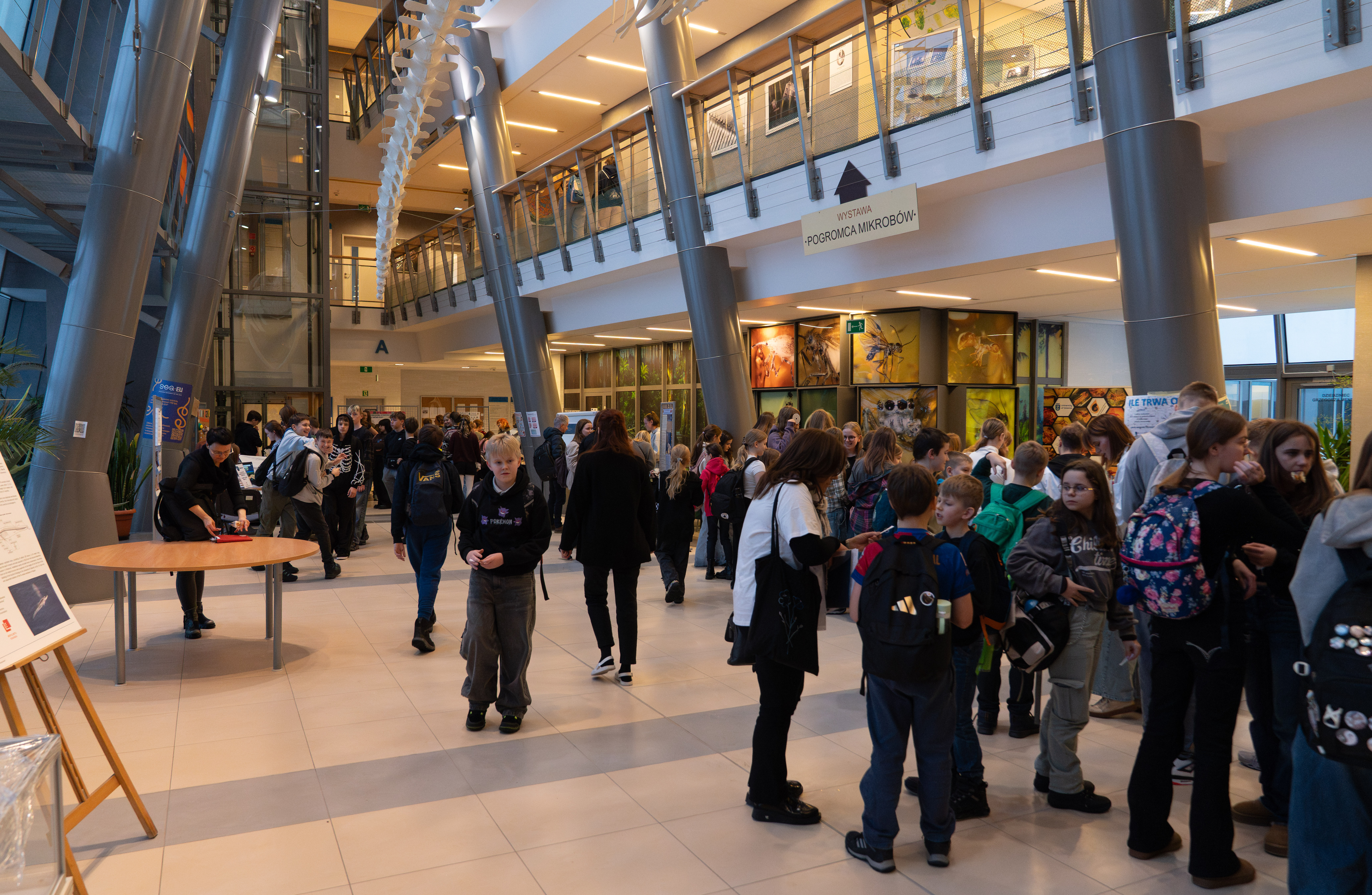 Międzyuczelniany Wydział Biotechnologii UG i GUMed postawił na naukę poprzez kreatywność i eksperymenty. Naukowcy z Międzynarodowego Centrum Badań nad Szczepionkami Przeciwnowotworowymi pokazali - za pomocą puszystych modeli - jak wybiera się komórki do walki z nowotworem. W zaciemnionej sali można było podziwiać świetlne obrazy „malowane” za pomocą bioluminescencyjnych bakterii. Odwiedzający mieli także okazję porównać płytki z posiewami bakterii czy grzybów, poznać zasady bezpiecznej pracy z wirusami, poszerzyć wiedzę o organizmach żyjących w glebie oraz… ulepić model jednego z nich. Gotowe modele pokazały ogromną różnorodność form przyjmowanych przez te organizmy.