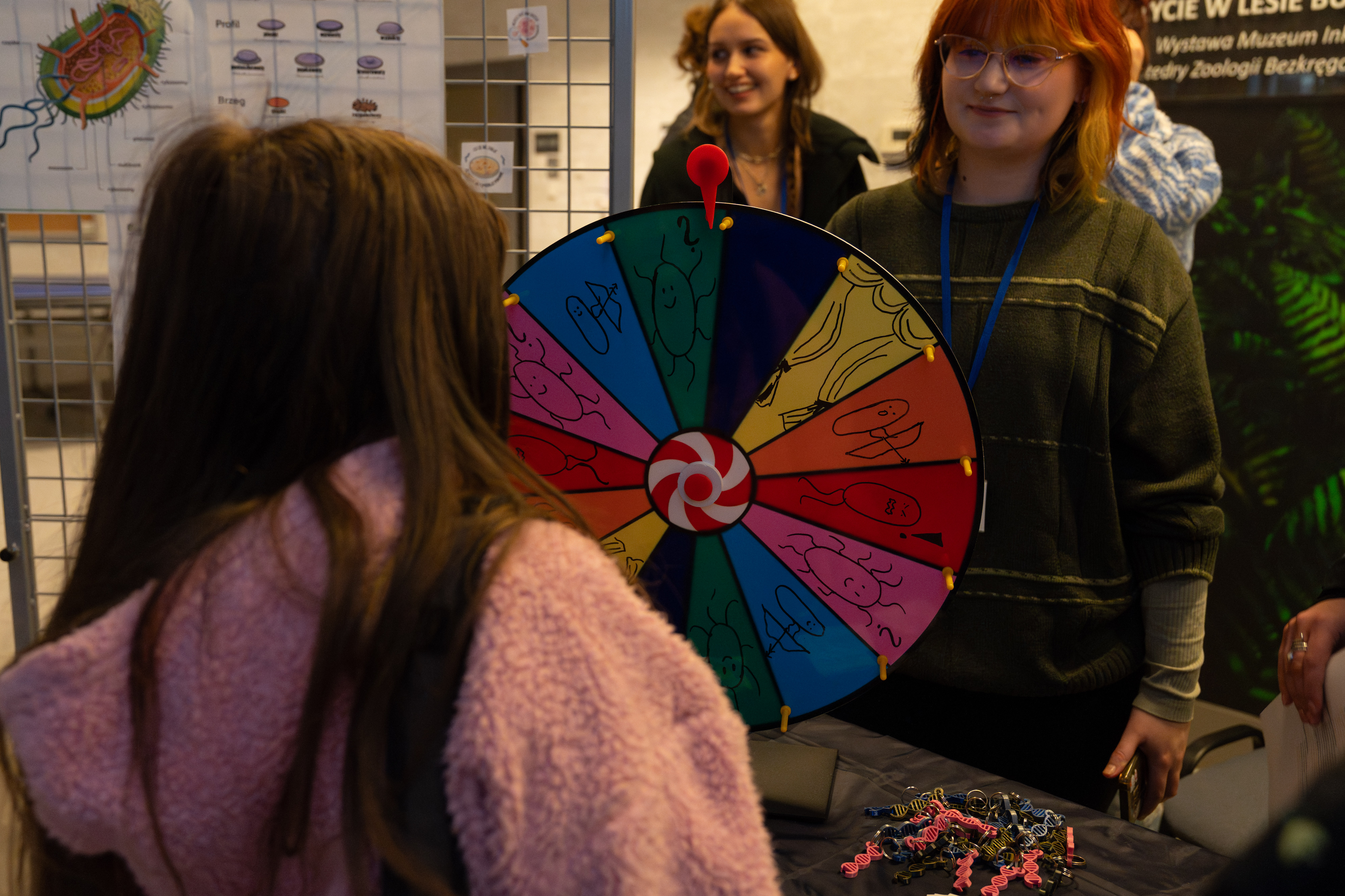 Stoiska kół naukowych na Wydziale Biologii były oblegane już od pierwszych godzin wydarzenia. Jakie niespodzianki czekały na odwiedzających? Przede wszystkim bogate i zróżnicowane, angażujące zarówno umysł, jak i zmysły czy ciało. Można było na własnej skórze przekonać się, jak działają odruchy (i poznać mechanizm, który za nimi stoi), odkryć wartość laboratoryjną niepozornego chwastu - rzodkiewnika - który jest znakomita rośliną modelową, przyjrzeć się roślinności wydmowej, poznać sekrety nietoperzy albo wytropić niesporczaka pod mikroskopem. Na odważnych czekały mięsożerne rośliny - jedną z nich, rosiczkę, można było zabrać do domu.