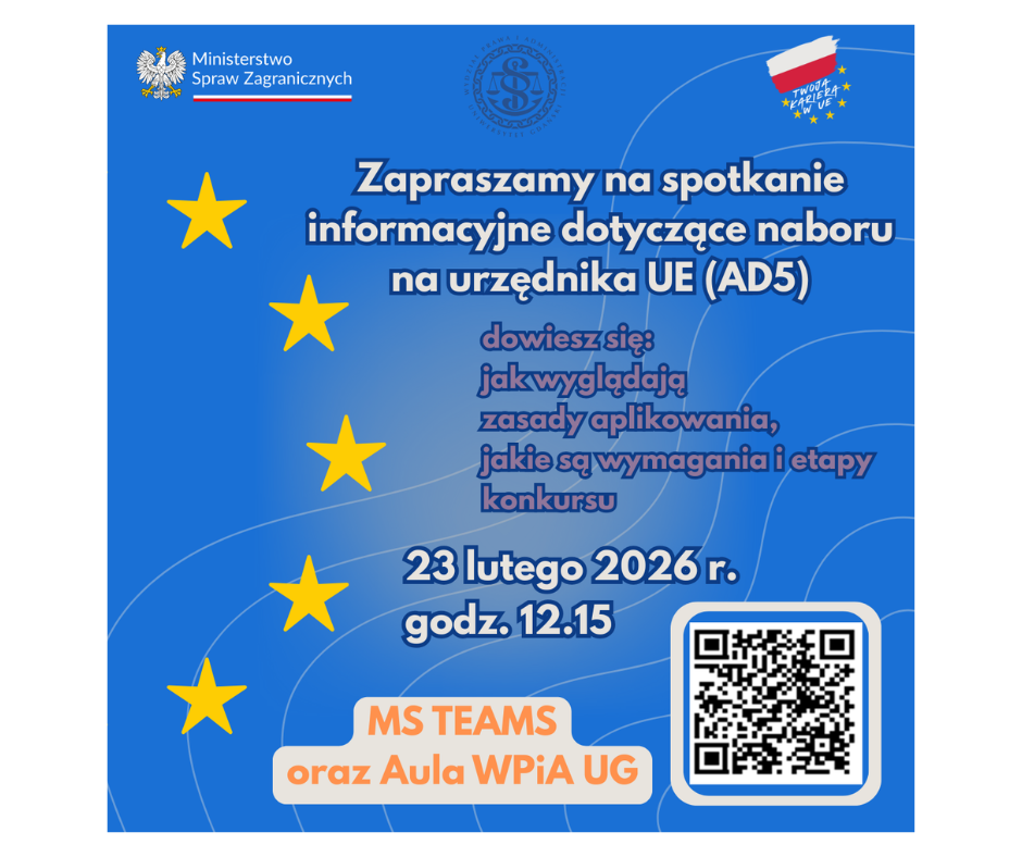 Ministerstwo Spraw Zagranicznych, we współpracy z Katedrą Prawa Europejskiego i Komparatystyki Prawniczej Wydziału Prawa i Administracji Uniwersytetu Gdańskiego, w ramach działań na rzecz wspierania kariery zawodowej Polaków w instytucjach Unii Europejskiej, informuje o konkursie ogłoszonym przez Europejski Urząd Doboru Kadr na podstawowe stanowiska merytoryczne (Administrator AD5) w instytucjach europejskich.